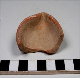| Description / विवरण | A fragment of a earthern lamp of red ware with featureless rim, of medium fabric. |