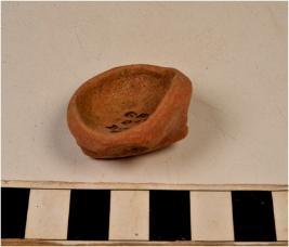 | Description / विवरण | A earthern lamp of red ware with incurved rim, tapering profile disc base of medium fabric. |