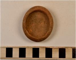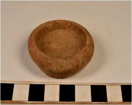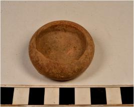 | Description / विवरण | A earthern lamp of red ware with incurved rim, tapering profile disc base of medium fabric. |