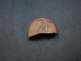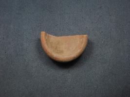 | Description / विवरण | It is a broken fragment of a diya or a fire pot made of terracotta was found in Agroha trench no.XC18, layer no.5. It is well fired and color is red. It has some cut marks and flaking on its surfaces. It is a wheel made pottery.It may be used for worship or lighting objectIts half part is missing. |