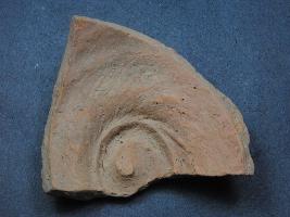 | Description / विवरण | It is a broken fragment of a diya or a fire pot made of terracotta was found in Agroha trench no.XE8, layer no.12. It is well fired and color is red. It has some cut marks and flaking on its surfaces. It is a wheel made pottery.It may be used for worship or lighting object |