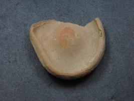| Description / विवरण | It is a broken fragment of a diya or a fire pot made of terracotta was found in Agroha trench no.WA25, layer no.3. It is well fired and color is red. It has some cut marks and flaking on its surfaces. It is a wheel made pottery.It may be used for worship or lighting object |