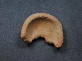 | Description / विवरण | It is a broken fragment of a diya or fire pot made of terracotta was found in Agroha trench no.XA10, layer no.1. It is well fired and color is red. It has some cut marks and flaking its surface. It is wheel made pottery. |