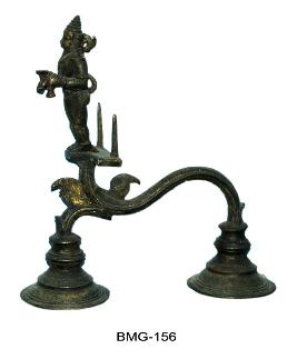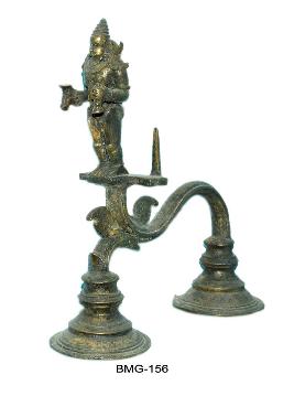 | Description / विवरण | it is a Nivedya lamp made of bronze, devotee standing on the lamp front side, he is having a lamp and bell, well designed arthi. |