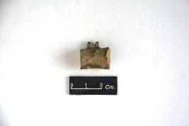 | Description / विवरण | Copper amulet having square shape with attached two circular hops for passing the threat or metal. Surface of the object has patination and deposit of matrix. |