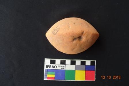 A hemispherical object with flat base . Prepared from well levigated clay, light pink colour.