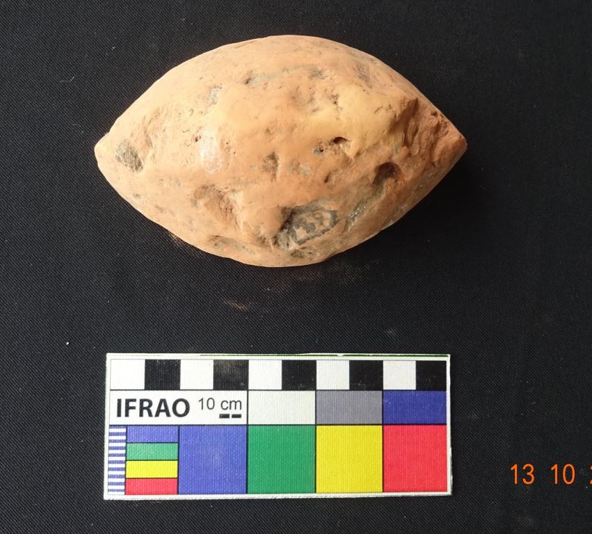 The object is spherical in shape with flat base