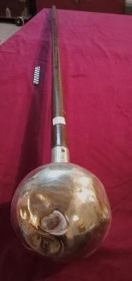 Bell with a stick. Bell made of silver with wooden handle. It is having inscription in Urdu as 1241.Top part of the bell has silver made round ball shaped bell and a long wooden handle is attached with it. At the neck part of bell inscription is written in Urdu as 1241.