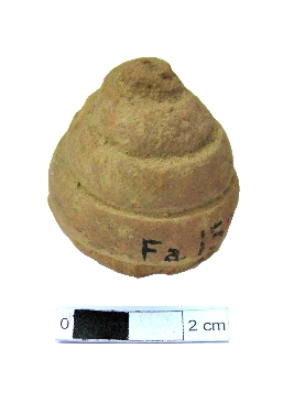 | Description / विवरण | It is a votive stupa with spiral ornamentation on its outside. |