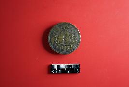 | Description / विवरण | This is a token rather than a monetary coin and would have been provided at a temple for a Hindu devotee to take away as a protective keepsake. It is of brass and most probably struck from a die. Obv. Ram Darbar scenes include the main characters of the Ramayana Rama, his wife Sita, his half-brothers Lakshman, Baratha and Satrughra. The monkey god Hanuman, a loyal devotee of Rama is always there as well, giving devotion to Rama. Hanuman played a central role and provided invaluable assistance to Rama. Rev. The reverse side depicts Hanuman making his way through the palm forest holding a sceptre in his right hand and carrying a mountain in the other. The inscriptions read RAJA RAMA SITA LAKMANAKI JA-A along the top and below HANAMANA SANA 47340. |