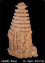 | Description / विवरण | Miniature sikhar Similar to no 62 showing Brahma seated within a niche flanked. by a female. |