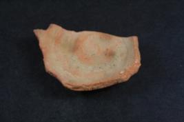 | Description / विवरण | It s a piece of diya made by terracotta and not well fired. Colour is ochred. Border is damaged and bottom portion is flat. Rubbing on the surface. |