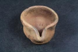 | Description / विवरण | It s a Lamp diya made by terracotta and not well fired. Colour is ochred and black. Bottom portion is flat and rubbing on the surface. |