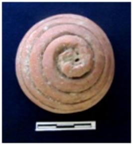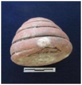 | Description / विवरण | Votive stupa of conical shape. Deep grooved lines are visible on bottom to top portion. This is semi-well fired and light red in color. |