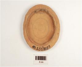 | Description / विवरण | A lamp of red ware with flared profile, flat top, chipped off surface and partly broken. |