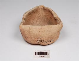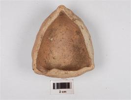 | Description / विवरण | An offering lamp of buff ware with three wicks, flat base and coarse fabric. |