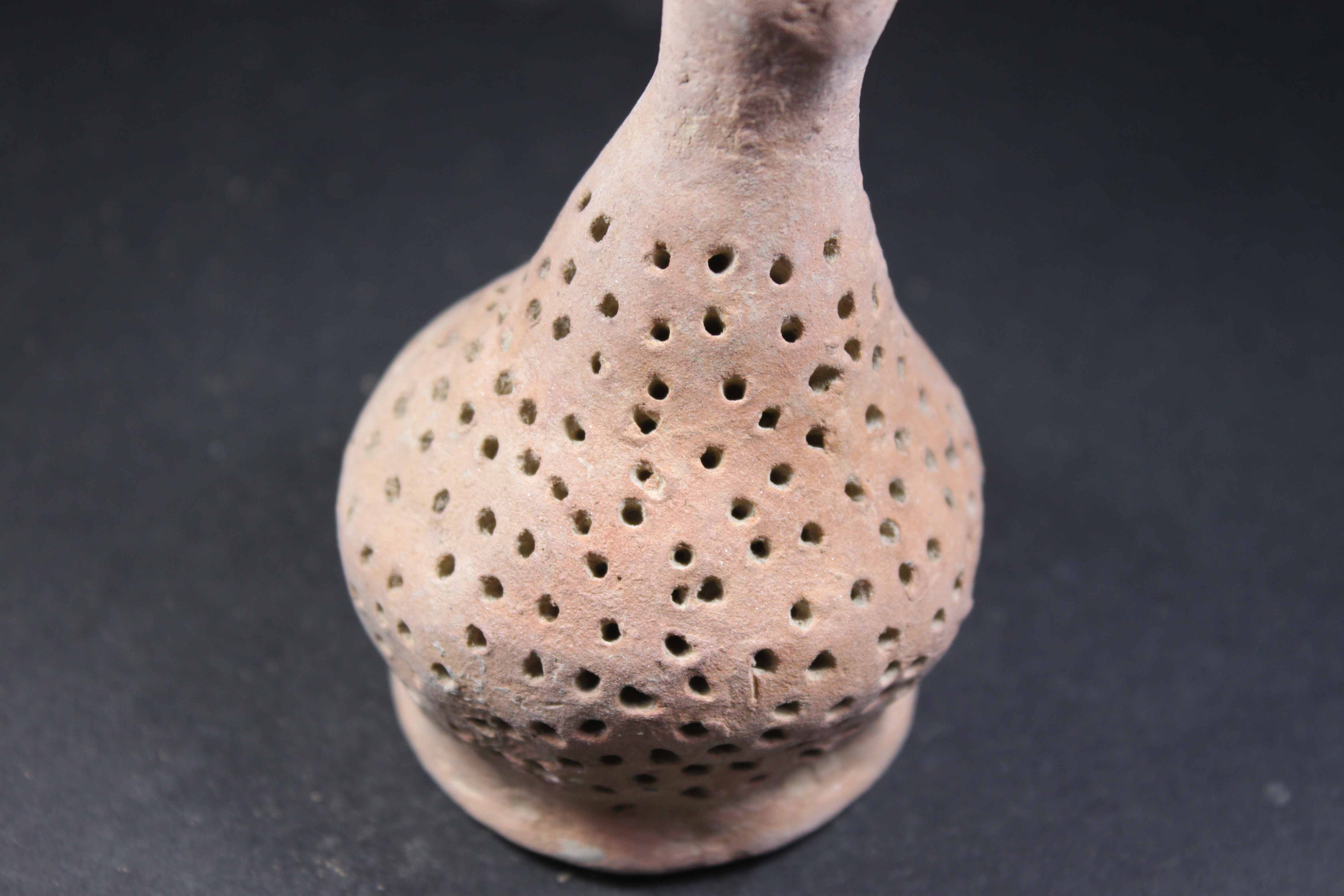 Stick elongated neck with round body having rough surface.