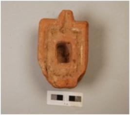 | Description / विवरण | Base of sivalinga with a rectangular shape with a base and a socket on top red slip visible on surface. |