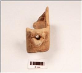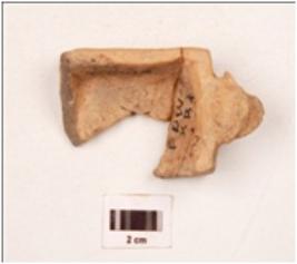 | Description / विवरण | Fragment of a handmade votive tank, ill fired, crocodile like appearance body like tank and mouth is opening outer surface decorated with incised geomatric lines, dull red slip was given, broken and joined later. |