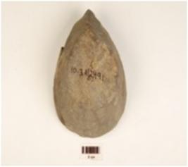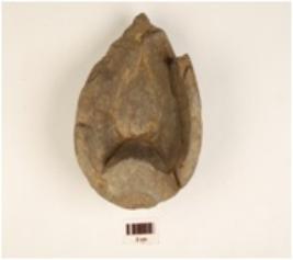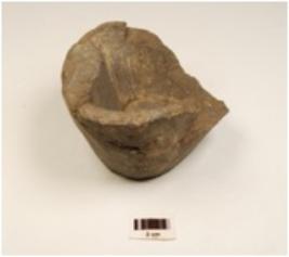 | Description / विवरण | A lamp made of soapstone, triangular in shape, partly broken and everted rim. |
