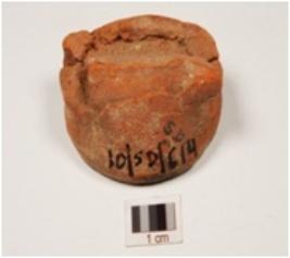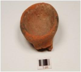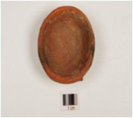 | Description / विवरण | A lamp of a votive tank of red ware treated with red slip on both sides. |
