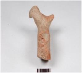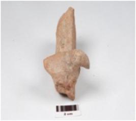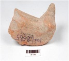 | Description / विवरण | Fragment of votive tank, a sitting bird on the top edge of and red slipped. |