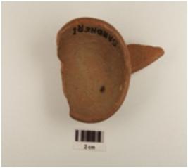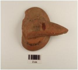 | Description / विवरण | A base fragment of a earthern lamp with feaureless rim and treated with red slip. |