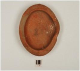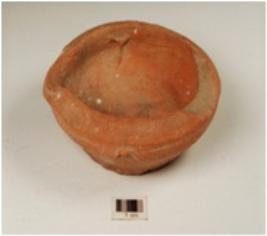 | Description / विवरण | A beaked lamp of red ware, treated with red slip on both surfaces and foot base. |