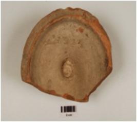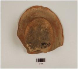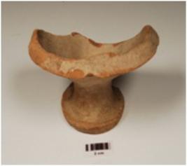| Description / विवरण | A fragment of an incense burner of red ware, treated with red slip on the both surfaces, has flaring externally thickened rim, and short pedastal base. |