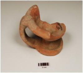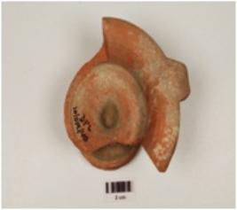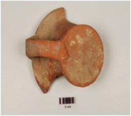 | Description / विवरण | A fragment of an incense burner with handle of red ware, treated with red slip on the both surfaces, has flaring rim, tapering profile, short pedastal base and ear like shaped handle. |
