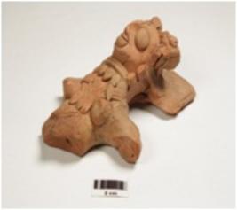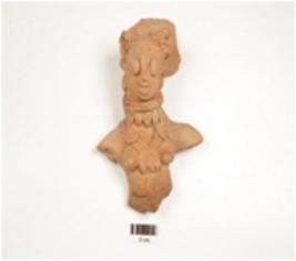 | Description / विवरण | A handmade mother goddess figurine, applique designs, applique hair band, pallet eyes, slit mouth, pinched nose, incised eyebrows, applique ears, torque with pendant, necklace with pendants running through breasts, applique breasts, broken hands and broken from waist. |