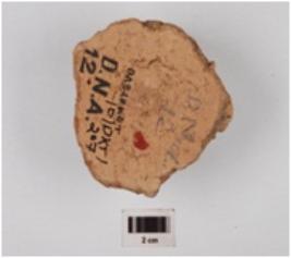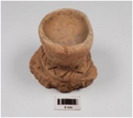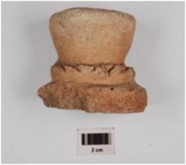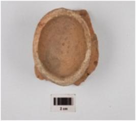| Description / विवरण | Fragment of a lamp with featureless rim, incised criss-cross design and flat base. |