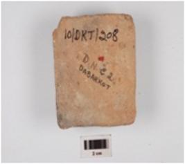 | Description / विवरण | Fragment of a lamp of terracotta with featureless rim, incised design, rectangular base and medium fabric. |