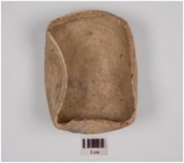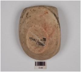 | Description / विवरण | A fragment of buff ware offering lamp, having intact beaks flat base. |