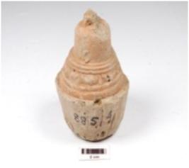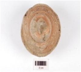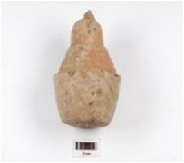 | Description / विवरण | A handmade terracotta stupa with base having incised design and harmika and partly broken chattravali placed on a conical stand. |