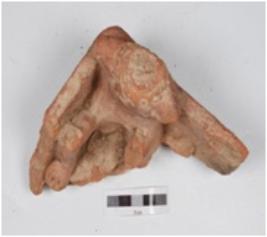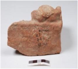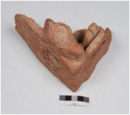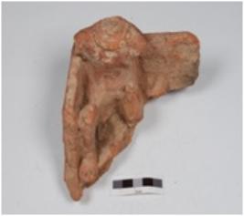| Description / विवरण | A terracotta female headless deated votive tank treated with red slip, well baked, wearing pearl torque, punched breasts, seated in the corner of a damaged votive tank. |