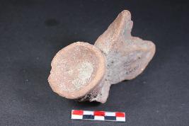 | Description / विवरण | A fragment of a votive tank having lamp attached on its one end . It has rough surface. |