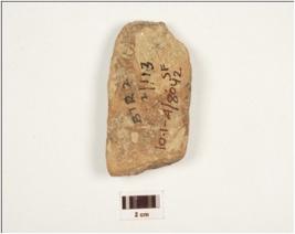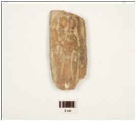 | Description / विवरण | Fragment of a handmade terracotta human figurine, neck is decorated with necklace, broken head and one hand rest on waist. |