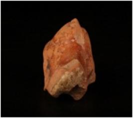 | Description / विवरण | A terracotta human head, slit incised mouth, with elaborated headness given a slip treatment in red colour and angular eyes. |
