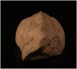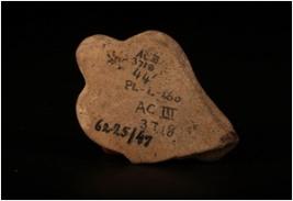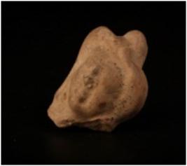 | Description / विवरण | A terracotta woman head with trefoil hair, given a slip treatment in buff colour and prominent nose and defaced. |