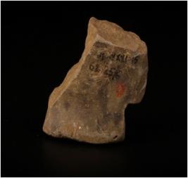 | Description / विवरण | A terracotta plaque depicting male wearing decorated drapery and given a slip treatment in grey colour. |