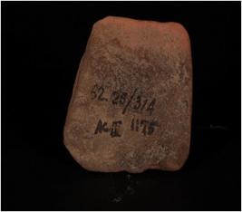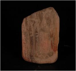 | Description / विवरण | Terracotta fragment of satti satta on plaque, lower portion is intact, upper portion is missing. Hands are holding garland and slender legs. |