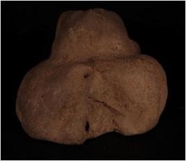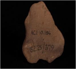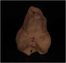 | Description / विवरण | Terracotta fragment of male head, face is partly broken and unfinished perforation on head. |