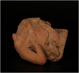 | Description / विवरण | Terracotta torso of a male figurine, head less, prominent arm curved on chest, shoulders are visible, legs are damaged and red in colour. |