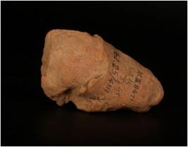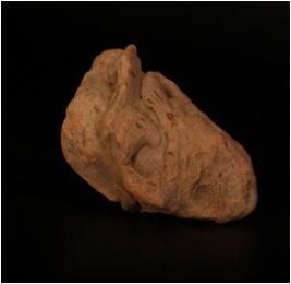 | Description / विवरण | Terracotta figurine of male, seated posture, defaced features, cruded, feet are broken, right hand is intact and buff in colour. |