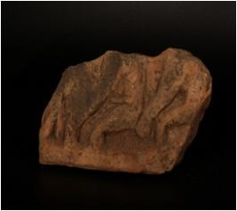 | Description / विवरण | Terracotta plaque fragment of standing human figurine. Cruded, two in numbers. Standing on pedestal. Half portion is missing and buff in colour. |