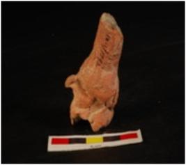 | Description / विवरण | Handmade terracotta object, the object depicting burner on lotus bud. Cylendrical lotus with burner type object on the bud with handle. |