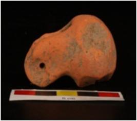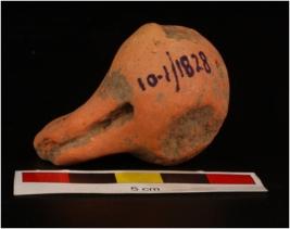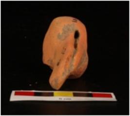 | Description / विवरण | Fragment of human head, elongated neck with perforation, pin hole features, groove on neck, wash treatment in red colour, well baked. |