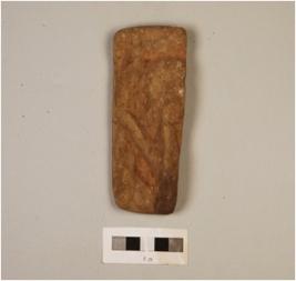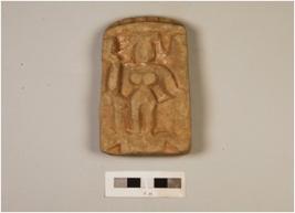 | Description / विवरण | Fragment of stone plaque depicting diety but defuced features are not clear, rectangular is shape, grey in colour. |