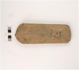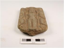 | Description / विवरण | A stone plaque representing a female figure, decorated with beautiful head dress. Angular eyes, ilongated nose and thick lips. Figure is in standing posture, incised lines on lower part is visible. |